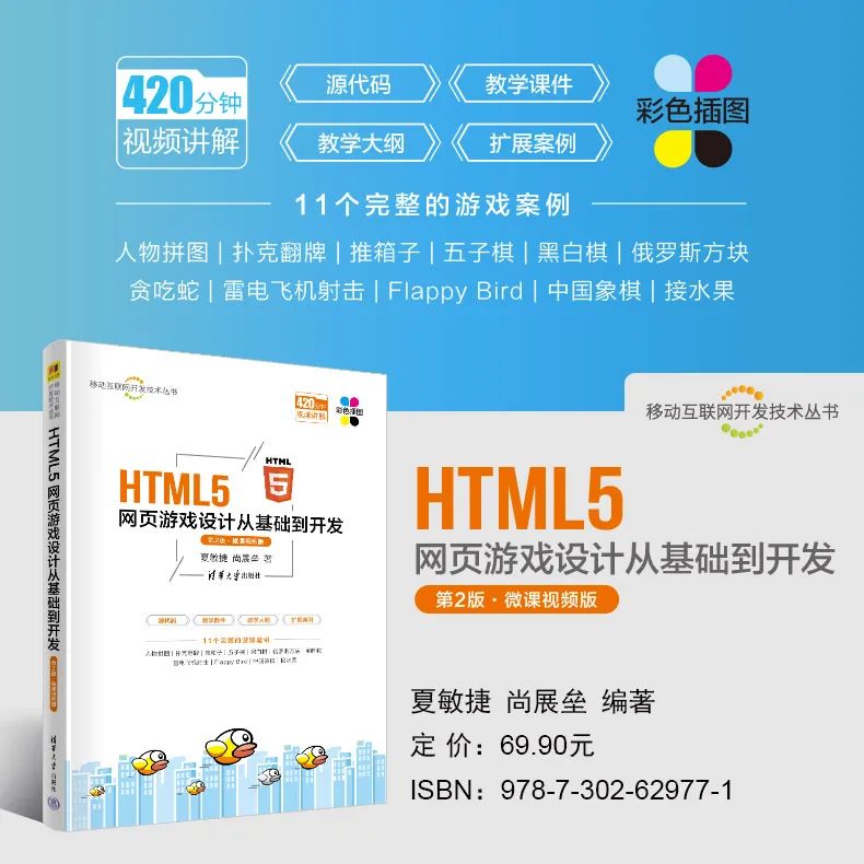 实战篇包括第7~17章,综合应用前面技术,开发经典的大家耳熟能详的游戏,如人物拼图、扑克翻牌、推箱子、五子棋、黑白棋、俄罗斯方块、贪吃蛇、雷电飞机射击、Flappy Bird、中国象棋。通过本书读者将学会如何利用HTML5和JavaScript、CSS3制作交互式游戏、平台类游戏,学会网页游戏设计。