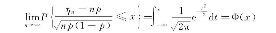 棣莫弗-拉普拉斯(De Moivre-Laplace)定理 设随机变量ηn(n=1,2,…)服从参数为n,p(0<p<1)的二项分布,则对于任意x,有: