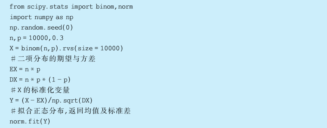取随机变量服从参数为n=10000,p=0.3的二项分布,检验代码如下: