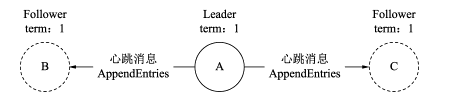 成员A获得包括自己在内的3张选票,赢得大多数选票,成员A晋升为Leader,并向其他成员发送心跳信息,维护自己的领导地位,如图3所示。