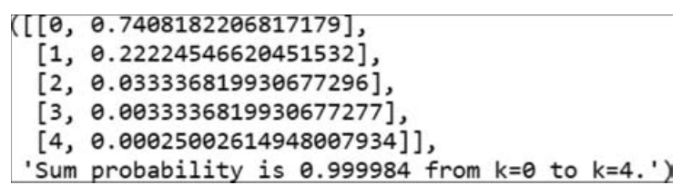 从图形输出结果可以看到,当k增加时,相应概率先是随之增加,增大到最大值(k=4时)后单调减少。