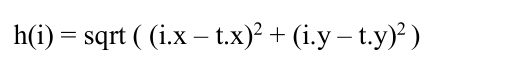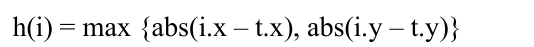 在二维平面的图问题中,有下面3种方法可以近似计算h。下面的(i.x, i.y)表示i点的坐标,(t.x, t.y)表示终点t的坐标。