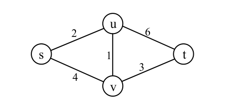 输入:第一行包含整数n和m,1<=n<=1000,0<=m<=1000000。点从1到n编号。后面m行,每行包括3个整数u、v、w,表示从点u到点v的边长为w。最后一行,包括三个整数s、t、k,1<=s,t<=n,1<=k<=1000。