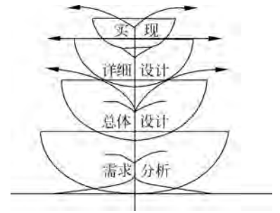 喷泉模型是一种以用户需求为动力,以对象为驱动的模型。喷泉模型克服了瀑布模型不支持软件重用和多项开发活动集成的局限性,可使开发过程具有迭代性和无间隙性。喷泉模型在各个开发阶段是重叠的,因此不利于项目的管理。此外,这种模型要求严格管理文档。喷泉模型如图1-5所示。