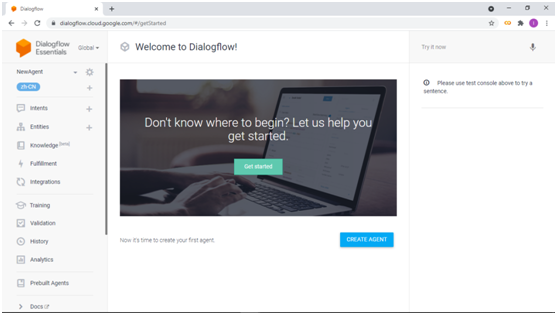 (1) 打开风址dialogflow.cloud.google.com/#/getStarted,如图8-3所示。