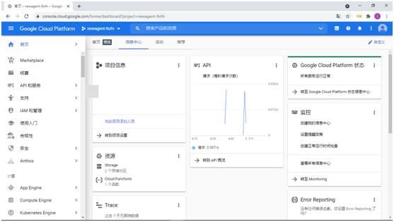 (7) 激活API功能,记录API信息到系统。打开网址https://console.cloud.google.com/,项目生成以后的信息画面如图8-8所示。