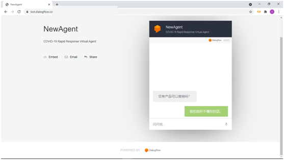 (10) 也可以选择Web Demo,将生成的智能导购客服部署到网页上,显示如图8-11所示画面,复制画面中的网页链接地址到一个新开浏览器窗口。