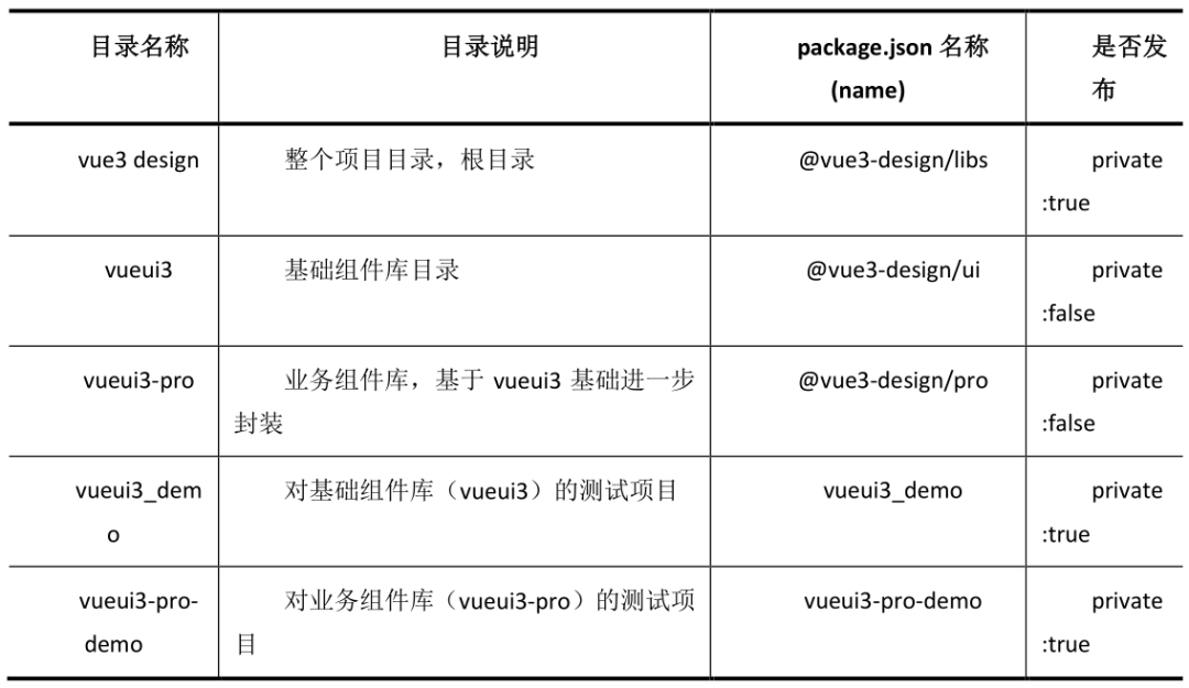 在vue3 design目录下,创建packages文件夹,所有管理的包都放在该目录中,效果如表9-2所示。