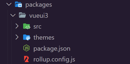 在packages目录下创建vueui3目录,使用Yarn工具生成package.json文件,命令如下: