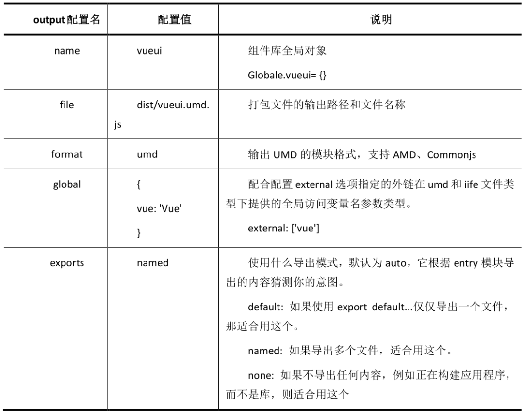 上面在output配置中,设置了两种不同格式的打包文件的输出,具体如表9-4所示。