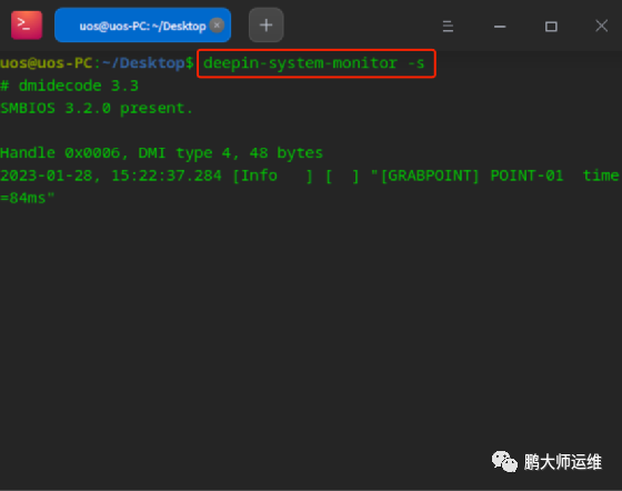 2、或者在终端中使用 deepen-system-monitor -s命令打开系统监视器