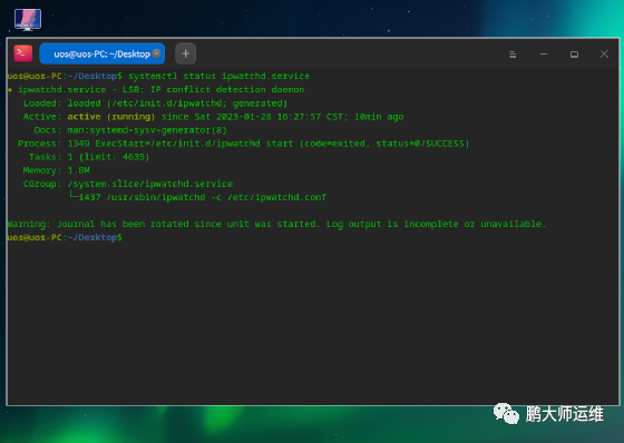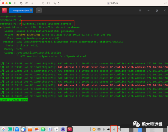 3、查看ipwatchd服务,发现显示IP冲突,通过更换IP即可