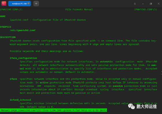 5、进入/etc中,man手册查看ipwatchd的配置文件