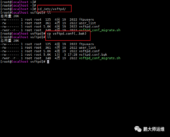 十一、进入/etc/vsftpd目录备份vsftpd.conf文件