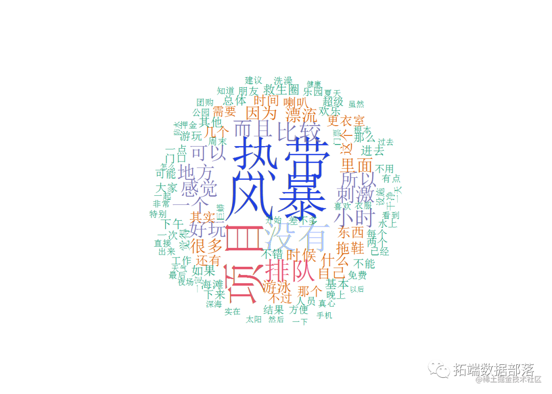 通过中文分词Rwordseg词频云软件包可以根据不同的词汇的词频高低来显示文本挖掘的高频词汇的总体结果。通过将词频用字体的大小和颜色的区分,我们可以明显地看到哪些词汇是高频的,哪些词汇的频率是差不多的,从而进行下一步研究。