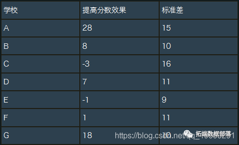 我们要使用的第一个数据集是 学校的数据集 。该数据集衡量了教练计划对大学入学考试(在美国使用的学业能力测验(SAT))的影响。数据集如下所示: