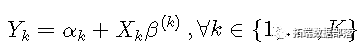 假设每个样本都属于K组之一。然后,层次回归指定如下: