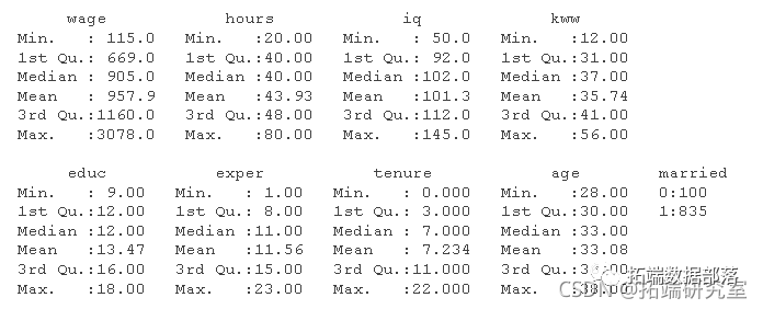 # 数据集中所有变量的汇总表--包括连续变量和分类变量