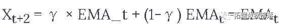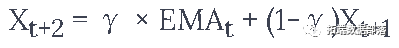 上述公式基本上是计算t+1时间步长的指数移动平均线,并将其作为超前一步的预测。γ决定最近的预测对EMA的贡献是什么。例如,γ=0.1只能得到当前值的10%进入EMA。因为你只取最近的一小部分,它允许保留你在平均数中很早看到的更早的值。请看下面用于预测向前一步的情况。