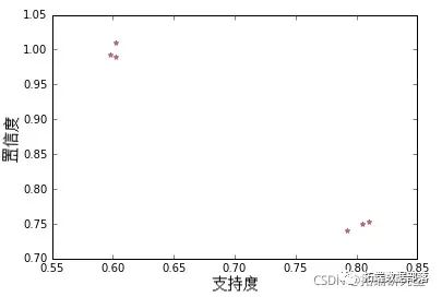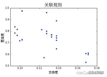 以下是支持度和置信度的散点图: