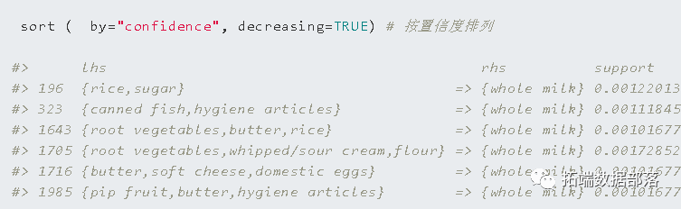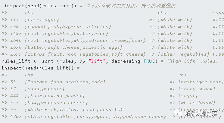 要获取关联规则,您可以运行以下代码