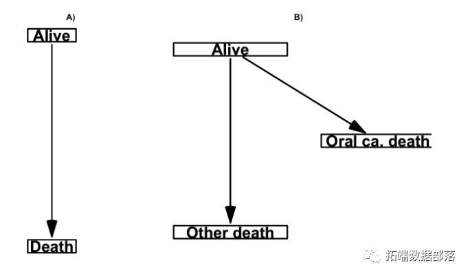当我们想要在竞争风险设置中对生存数据进行建模时,有两种常见的策略可以解决不同的问题: