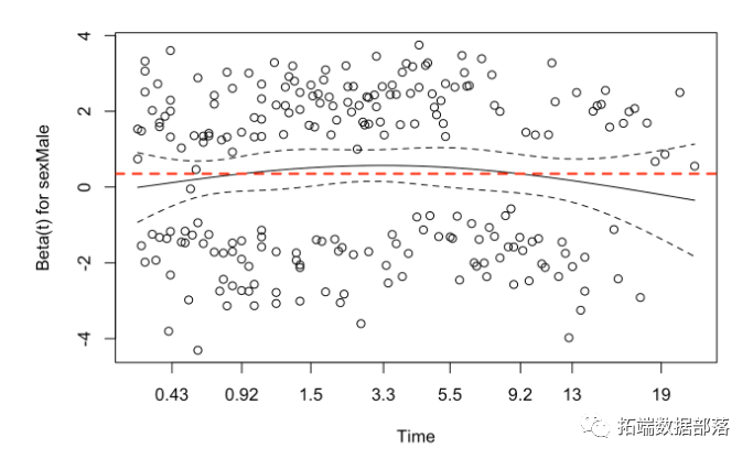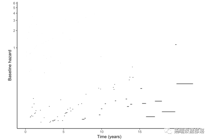 β0= 2.665 是参考组中死亡概率等于0.25的时间。另一个被解释为相对度量。