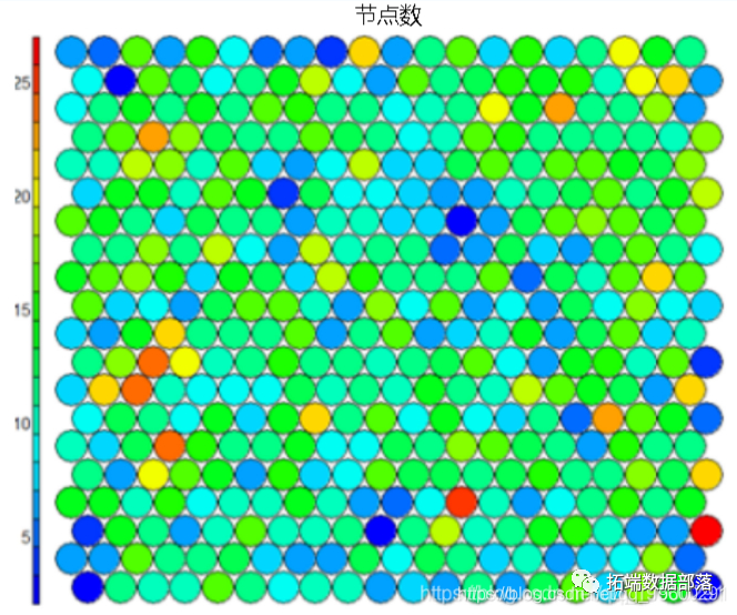 我们可以可视化映射到地图上每个节点的样本数。此度量可以用作图质量的度量-理想情况下,样本分布相对均匀。选择图大小时,每个节点至少要有5-10个样本。#节点数