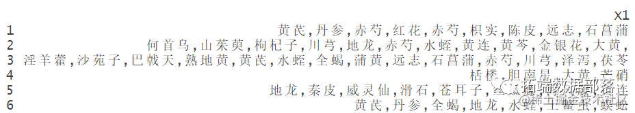 在中医挖掘中,数据的来源比较广泛,有的是通过临床收集用药处方,比如,一个著名老中医针对某一疾病的用药情况;有的是通过古籍,古代流传下来的药方;还有一种情况是在论文数据框里查找专门治疗某一疾病的文献,从中找到处方,用来分析。