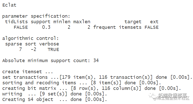 at(dat1,parameter=list(support=0.3,minlen=2,maxle