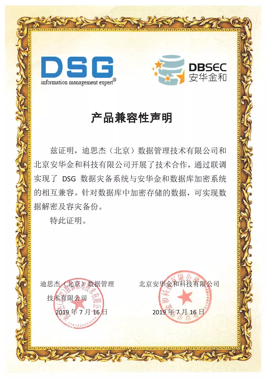 早在2019年初,安华金和与迪思杰分别作为数据库加密领域、数据库灾备处理领域的领导厂商,便已在某国家重点能源项目的场景需求推动下,达成战略合作并实现了产品联调:经安华金和数据库加密系统加密后的数据库核心数据,可以直接由DSG数据灾备系统进行高效备份;同时,还可根据用户需求,快速恢复到另外一台同样经过加密处理的数据库实例中使用。这种敢于打破常规、突破束缚、优势互补的产品联调,不仅大大增强了加密数据的运维便捷性,也提高了数据备份与恢复系统的适用性。