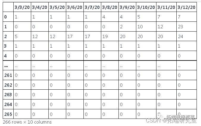 此表中的数据以累积的形式呈现,为了找出每天的新病例,我们需要减去这些值