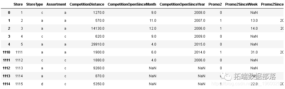 在商店集中,我们有1115个观察值和10列/变量。