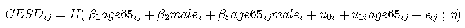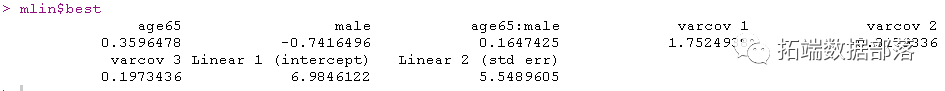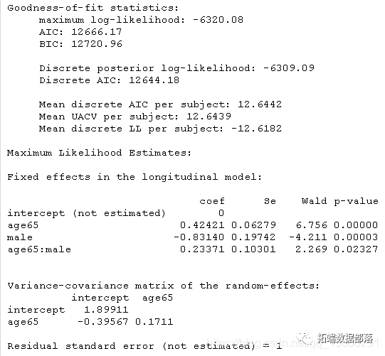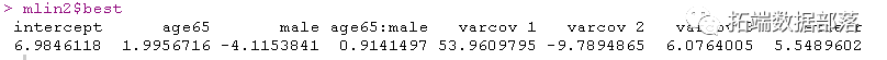 hlme(CESD ~ age65*male, random=~ age65 #链接=线性