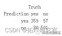 我们看到我们的模型在我们的测试数据集上产生了 80 个假阴性和 57 个假阳性。