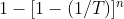 上表中的对角线非常有趣。似乎在某种程度上趋向极限值(此处为63.2%)。在n年内观察到的事件数量具有二项式分布,其概率为