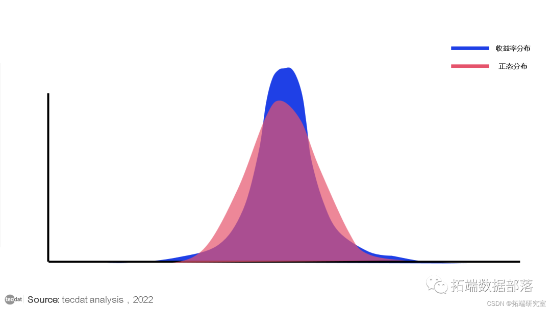 现在普遍接受的是,资产收益的经验分布是尖峰的意思(大致),即关于均值的四阶矩大于具有相同方差的正态分布的相同统计量。这意味着观察到更多的极端回报和更少的中等回报,“尖峰”意味着实际分布中靠近均值的天数更多,“厚尾”表示极端收益率出现的频率高于正态分布的预测,比如出人意料的“黑天鹅事件”。