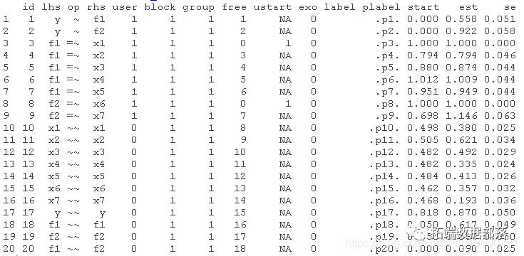 lavaan语法参数和输出