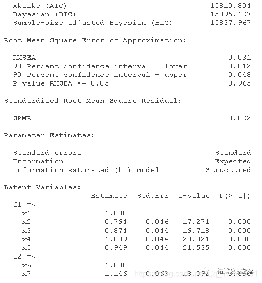 正如各模型的LRT所示,sem()和cfa()是具有相同默认值的软件包。CFA可以很容易地使用cfa()或sem()完成 结构方程模型