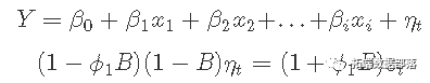 被假定为遵循ARIMA模型。例如,如果 nt 遵循一个 ARIMA(1,1,1)模型,我们可以写成