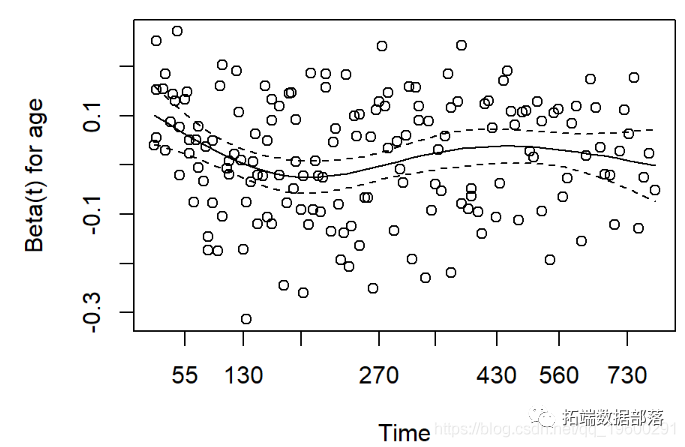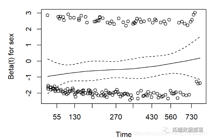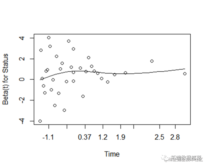 P值小显示PH假设不符合,显示系数变化图。