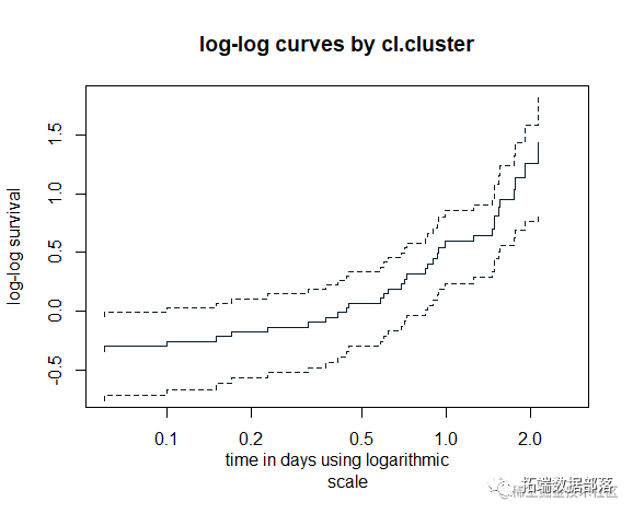然后 对生存时间取对数 plot(kmfit2,fun='clogl