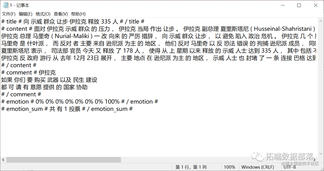 语料是从yahoo Qimo上爬的新闻语料,一共49000篇(查看文末了解数据免费获取方式),每篇包含题目、新闻内容、评论、读者投票结果(投票选择依次为:实用,感人、开心、超扯、无聊、害怕、难过、火大)以及总投票个数。