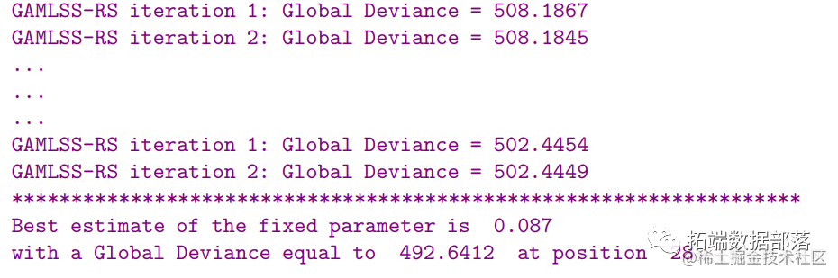 GAMLSS-RS iteration 3: Global Deviance = 492.6373