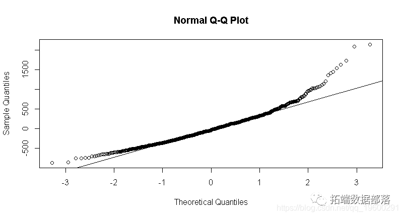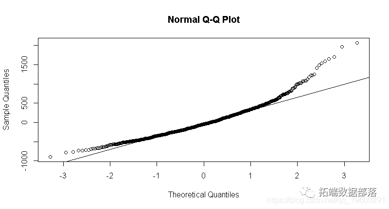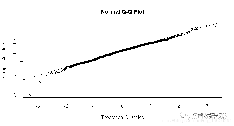 基于上述残差图,可以假定对数工资线性模型与iq的正态分布。