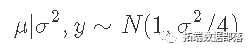 假设你观察到y的四个数值观测值,分别为2、2、0和0,样本均值y′=1,样本方差s2=4/3。假设y∼N(μ,σ2),在参考先验p(μ,σ2)∼1/σ2下,我们的后验概率变为