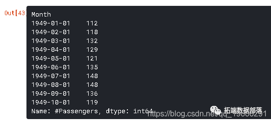 ts = data[‘#Passengers’] ts.head(10)