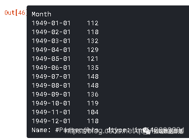 与数字索引不同的是,结束索引包含在这里。例如,如果我们将列表索引为[:5],那么它将返回索引处的值–[0,1,2,3,4]。但这里的索引“1949-05-01”包含在输出中。