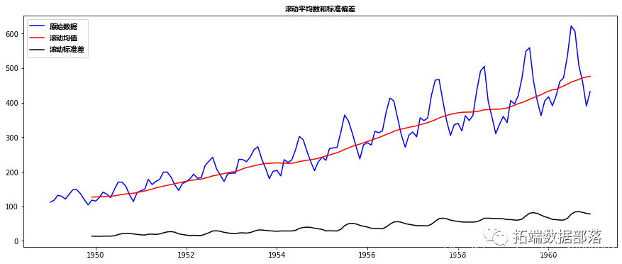 plt.title('滚动平均数和标准偏差',fontproperties=myfont)