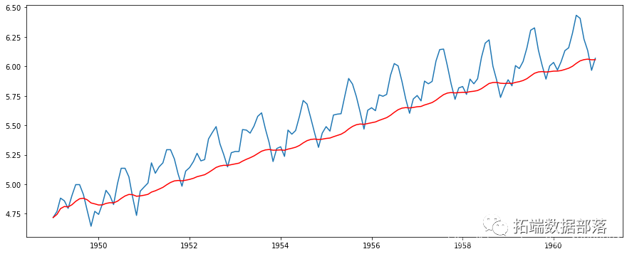 在这种方法中,我们根据时间序列的频率取“k”连续值的平均值。这里我们可以取过去一年的平均值,也就是最近12个值。pandas有确定滚动统计的特定功能。